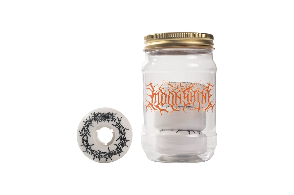 The wheels are available in an optional Plastic Mason Jar featuring our metal inspired Lorna Shine logo with a water tight lid.