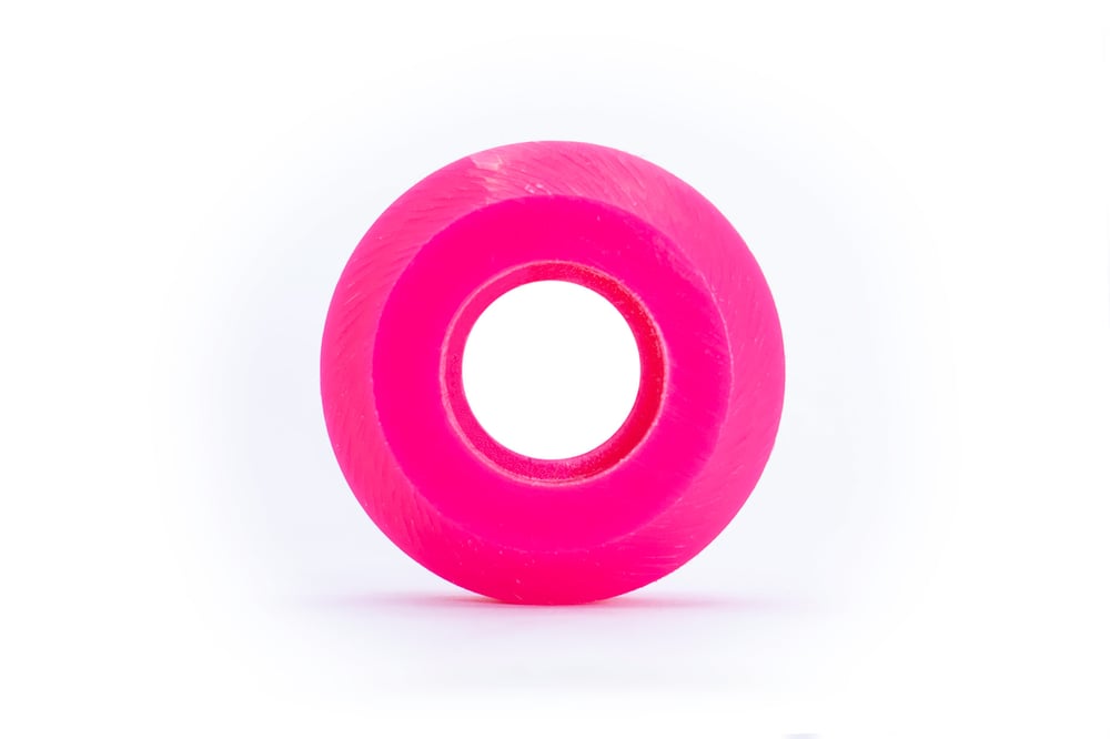 Our most requested color is FINALLY available. Say hello to our NEON Pink anti rocker wheels. Currently only available in 46mm with bearing accepting cut outs making it perfect for most traditional frames like GC feather lights, Create Originals, & Aeon 60s.